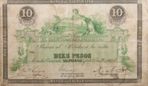 Billete de diez pesos, Banco de Valparaíso, 1866.